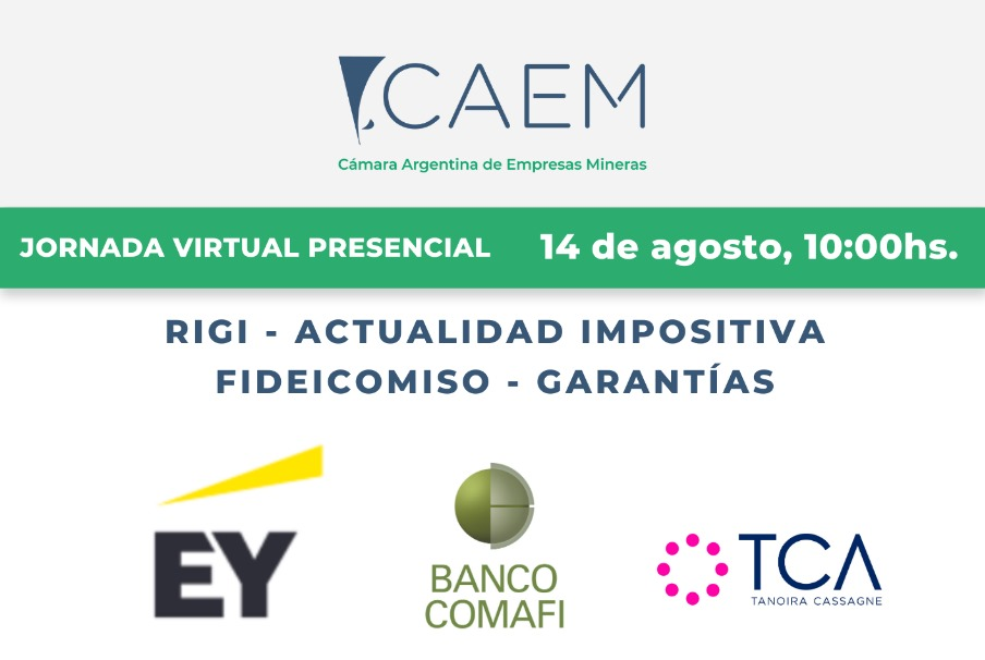 Dentro del ciclo de Charlas de la Cámara Argentina de Empresas Mineras (CAEM), el próximo miércoles 14 se realizará un encuentro sobre RIGI, actualidad impositiva y finanzas.